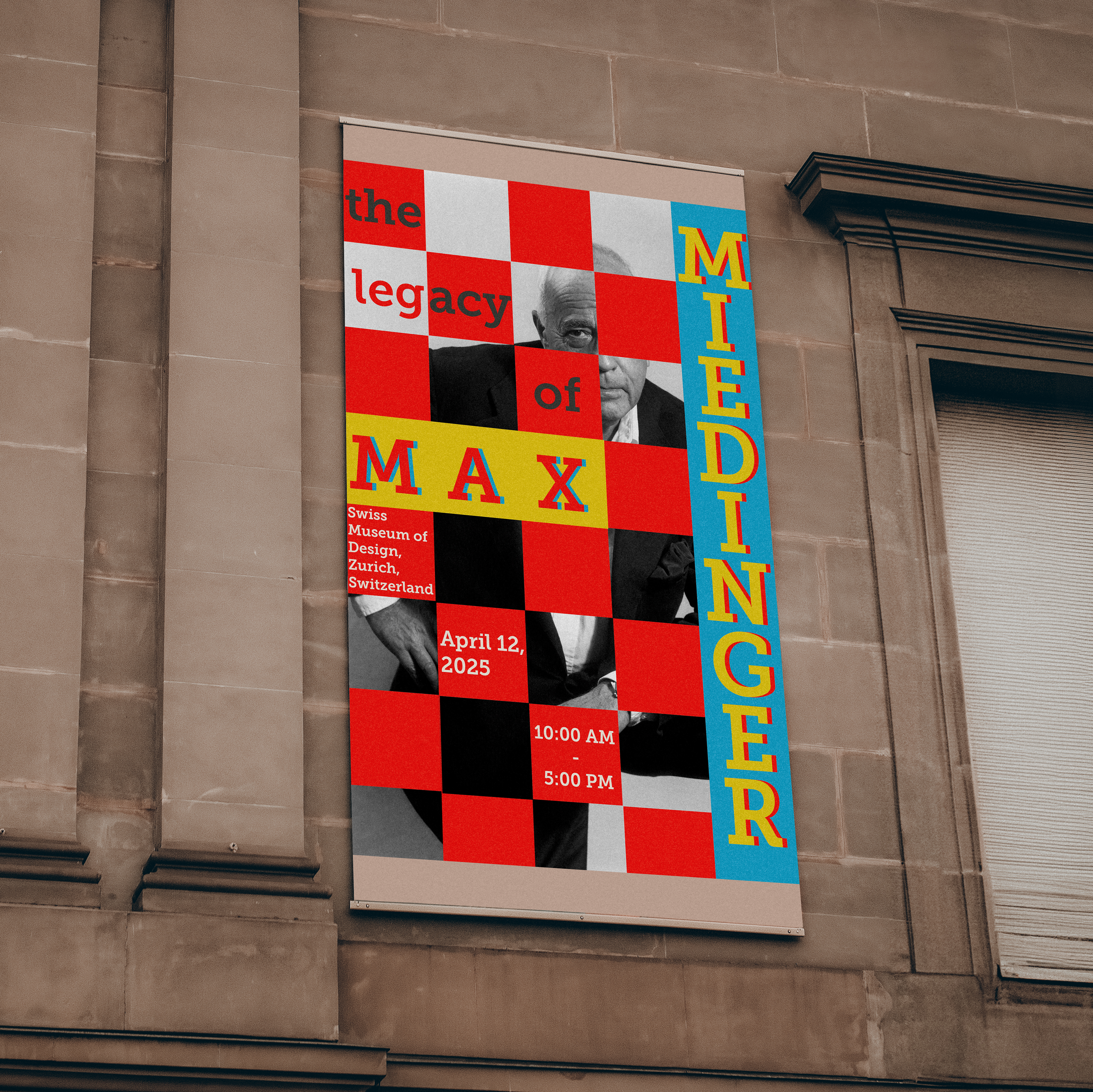 For this project, I was given the scenario of designing a poster, ticket, and booklet for a museum exhibition honoring the work of Max Miedinger. Throughout the process, I researched Miedinger’s design legacy and studied common practices used in promotional materials for art exhibitions, especially poster and ticket design. As part of the assignment, I developed five different poster advertisement variations. From these five concepts, two were selected to be further refined and expanded into ticket designs and a booklet. During my research, I learned that Miedinger often preferred strict grid structures in his work, which influenced the layout of my designs. For the first color palette, I used the primary colors red, yellow, and blue to create a bold and visually striking composition. One of the ticket concepts also draws inspiration from another typeface he previously designed (Pro Arte), which helped guide the